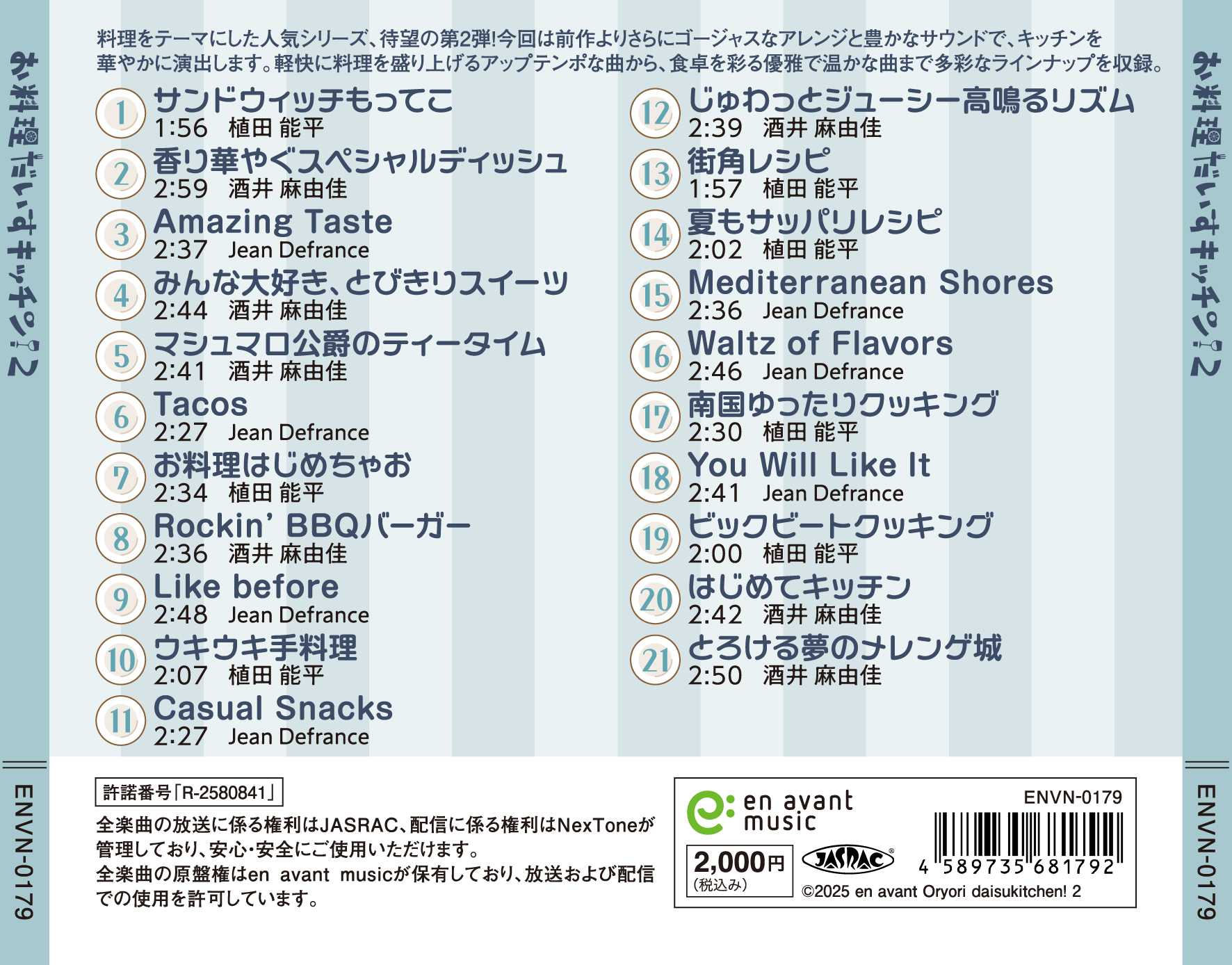 料理をテーマにした人気シリーズ、待望の第2弾! 今回は前作よりさらにゴージャスなアレンジと豊かなサウンドで、キッチンを華やかに演出します。