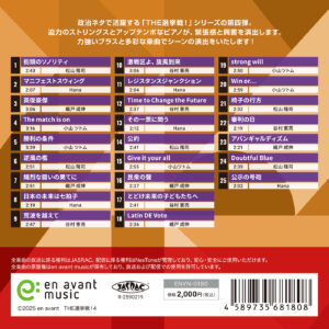 選挙シーズンで活躍する「THE選挙戦」シリーズの第三弾。 白熱する選挙シーンや説明シーン等、選挙特番を後押しする楽曲を収録。 有権者の心に響くメロディが、あなたのメッセージをより力強く伝えます。