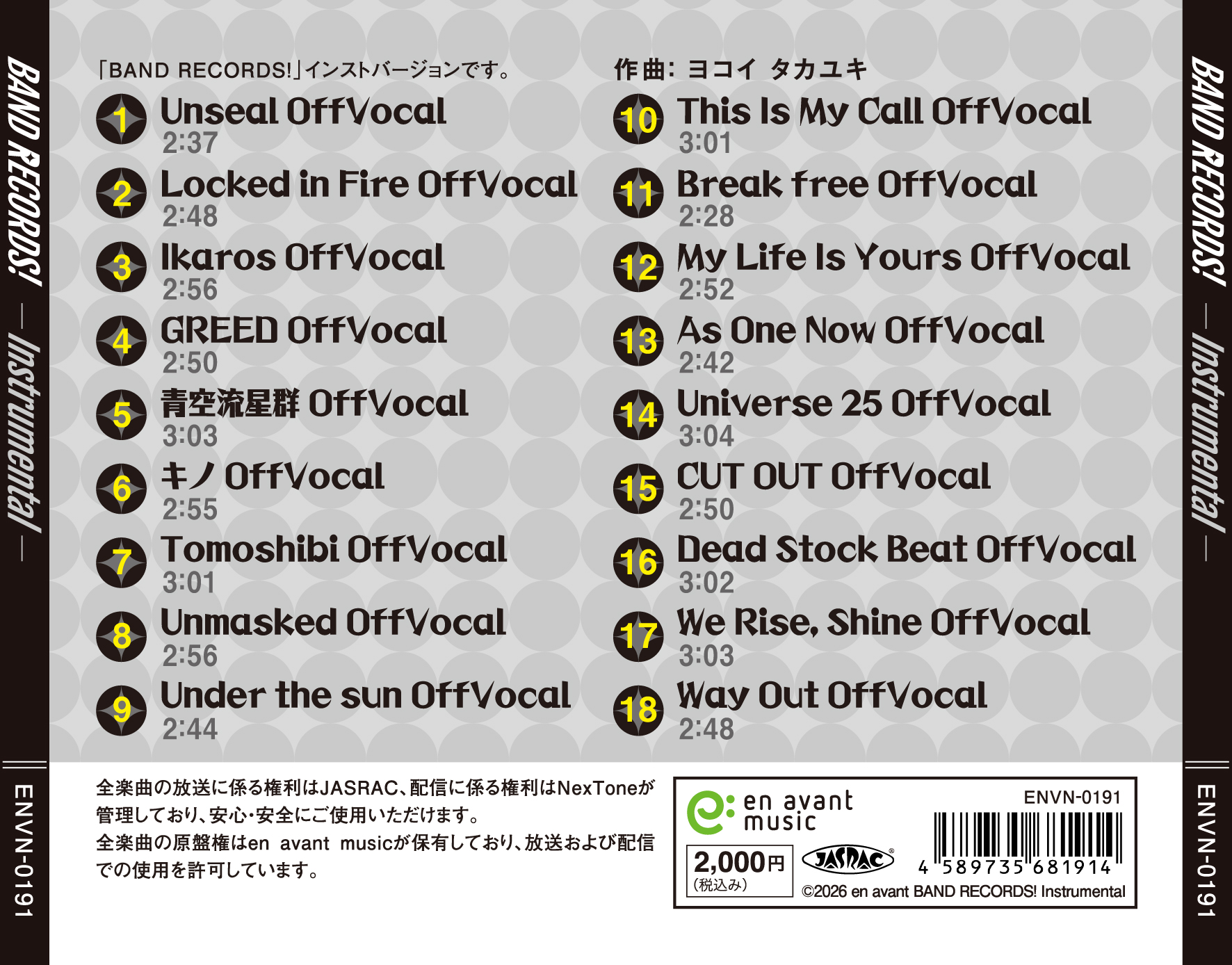 「BAND RECORDS! Vocal」のインストです。
